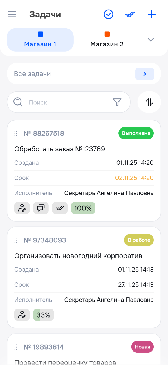В мобильном приложении появился новый раздел «Задачи», который позволяет создавать и контролировать задачи, а также получать и отмечать исполнение задач в зависимости от роли пользователя.