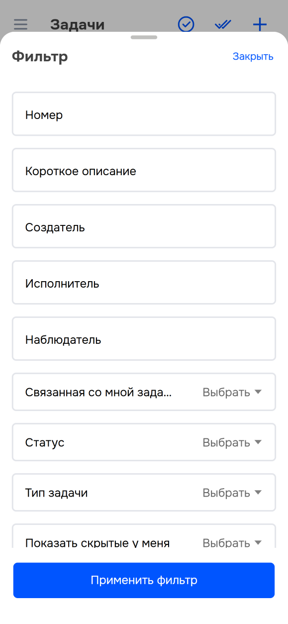 - Мои задачи (Исполнитель: Ваш пользователь)