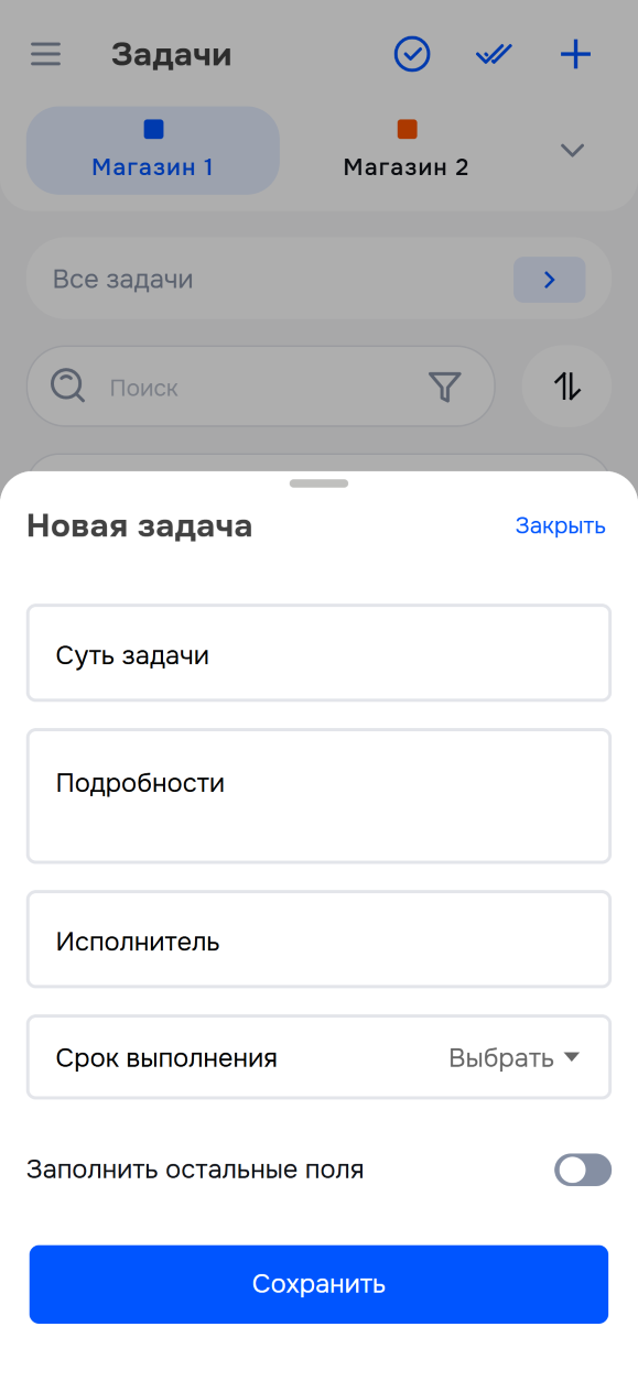 Чек-листы – еще один очень важный раздел в задаче. Представим задачу, например, «Изменить ценники у товаров», которую сотрудник, находясь на складе ставит магазину. При этом он может создать чек-лист, каждый пункт которого заполнить товаром с помощью сканирования штрих-кода через камеру телефона.